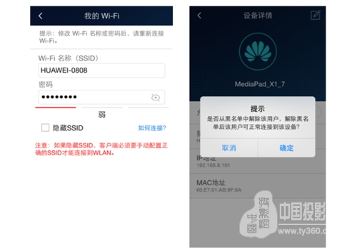 在手機、平板電腦上下載華為HiLink APP,管理E5573也很方便。它不僅實現流量監控,接入用戶可視化管理,還可以可以隱藏SSID,拉黑陌生人。連接E5573的不同設備(手機、平板)之間,還可以進行不需要流量的照片分享,性能十分強大。