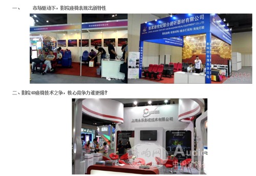記者走訪中,發現不少從事影院附屬材料及產品的廠商,帶來了多款新產品,包括多款臺階燈、防火軟包面料、3D眼鏡、廣告燈箱等,他們都有一個特點,就是款式更多、樣式新穎。可見在細節創新上這些廠商都比較重視,給客戶帶來了更多選擇。折射出中國影院建設向多元化、多層次方向發展的新趨勢。