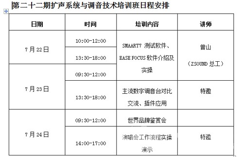 ZSOUND聯合深圳聚圳空間(ZSOUND演出聯盟單位),定于2015年7月22日至24日舉辦第二十二期擴聲系統與調音技術培訓班。本次培訓班人數約80人,為保證授課質量,報名名額超過80人即截止報名。