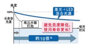 水銀燈泡的壽命是傳統(tǒng)投影機(jī)最大的劣勢,高昂的后續(xù)支出費(fèi)用使得許多對投影機(jī)感興趣的消費(fèi)者望而卻步。但是此次CORE系列投影機(jī)使用全新的混合光源技術(shù),使用壽命是燈泡機(jī)的10倍左右,并且電力消耗只有普通燈泡投影機(jī)的一半。在減少維護(hù)成本和使用成本的同時(shí),亮度的衰減也較慢。