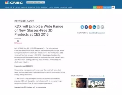 據傳康得新將在展會期間面向全球舉行裸眼3D技術的研討會活動,聯合來自全球的一線品牌廠商,共話裸眼3D未來,攜手引領全球視覺革命,共同為創造人類美好生活而增智添力。這也成為了媒體紛紛關注的一大因素,美國本土已有超過250家媒體進行傳播和轉載,關注康得新在科技行業的盛事與創新亮點。