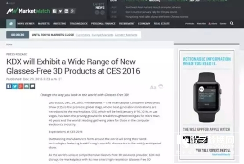 康得新在裸眼3D產業鏈中的成績也吸引了國內外眾多媒體的關注。