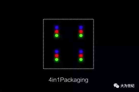 所以,全體看來“四合一”的封裝構造才是這輪新品秀的重點:MINI-LED次要提供了采用“四合一”構造的必需性——100微米的LED晶體做成單像素的封裝構造尺寸極小,超越表貼工藝經濟性使用的極限。同時,這種集成度更高的四像素合一的封裝,也發生了共同的使用劣勢,比方維修性,更具有表貼商品的經濟性與COB商品的良好視覺感。