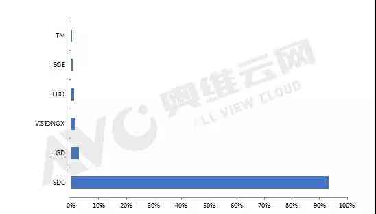 2018年截至9月,全面屏出貨7.1億,在智能手機滲透率達50%,其中LCD全面屏出貨5億,滲透率達38%,AMOLED全面屏出貨2.1億,滲透率達72%,至9月,AMOLED整體出貨2.9億, 三星依然排名全球第一,國內面板廠維信諾排名全球第三,國內第一,BOE為國內首家量產柔性面板的面板廠,且進入華為Mate 20 Pro的供應鏈。