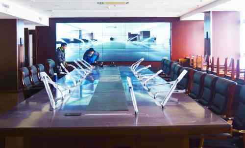 4、顯示設備對于視頻會議效果影響很大,要確保顯示清晰度和質量。一般采用投影儀、智能交互平板、液晶電視、大屏。投影儀和幕布是會議室常用的設備,投影儀優點是在支持超大屏幕時性價比高;缺點是投影儀的燈泡有壽命,使用頻繁的話需經常更換。液晶或等離子電視,優點是壽命長清晰度高,在小會議室性價比好,在支持超大屏幕價格太高。智能交互平板是在液晶平板基礎上支持了觸摸交互功能,極大的增強了其交互效果,適宜現場培訓或教學使用。缺點也是在超大屏幕(65寸以上)時價格偏高。在大會議室或培訓室,采用投影儀與智能交互平板或液晶電視相結合的方案。這樣后排的人可以通過輔助智能交互平板或液晶電視更清晰的觀看視頻會議內容。