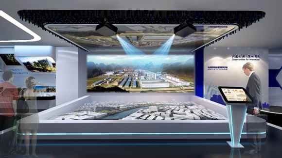 數(shù)字全息投影沙盤,首先讓參觀者了解中鋁國(guó)際的國(guó)家亮點(diǎn)工程的沙盤演繹。