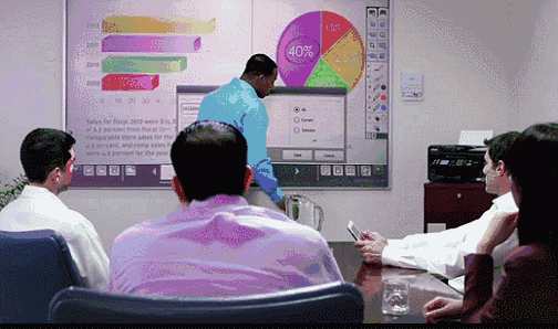 隨著大屏投影技術的提升,會議節奏得以優化,參會者的使用體驗也大幅上升,互動式投影一體機讓人們從繁瑣的設備和操作中跳出,將精力專注于會議內容本身,從而提高了商務辦公的效率。