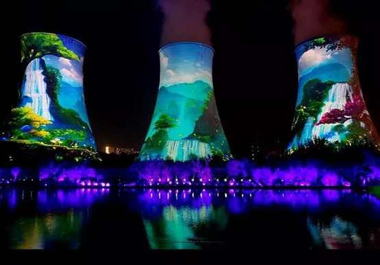 高塔投影秀運(yùn)用12臺(tái)NEC 4萬(wàn)流明4K雙色激光旗艦級(jí)工程投影機(jī),開(kāi)創(chuàng)性地以近百米發(fā)電廠冷卻水塔為背景,在超過(guò)10000平方米的高塔「屏幕」上,演繹了一場(chǎng)氣勢(shì)恢宏的傳奇劇目,炫目的投影效果讓世人嘆為觀止。
