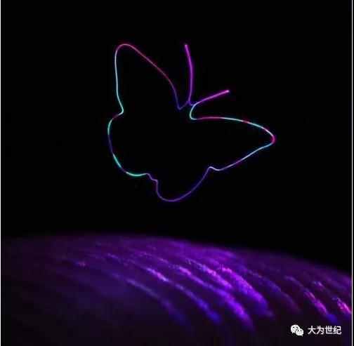借助所謂的體三維顯示(volumetric display)技術,系統可以通過一個例子來創建上圖中的漂浮蝴蝶