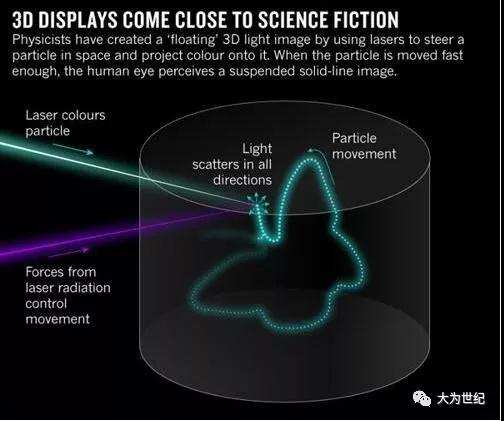 Smalley的團隊采取了一種不同的方法,利用所謂的體三維顯示(volumetric display)技術來創建用戶能夠從任意角度感知的移動3D圖像。部分物理學家表示,這種技術更接近于《星球大戰》電影中的萊婭公主3D投影。英國格拉斯哥大學的光學物理學家Miles Padgett說道:“這能夠做到全息圖所不能做到的事情,亦即為你提供一種全視角的視圖,一種萊婭公主式的顯示圖像,因為這根本就不是全息圖。”