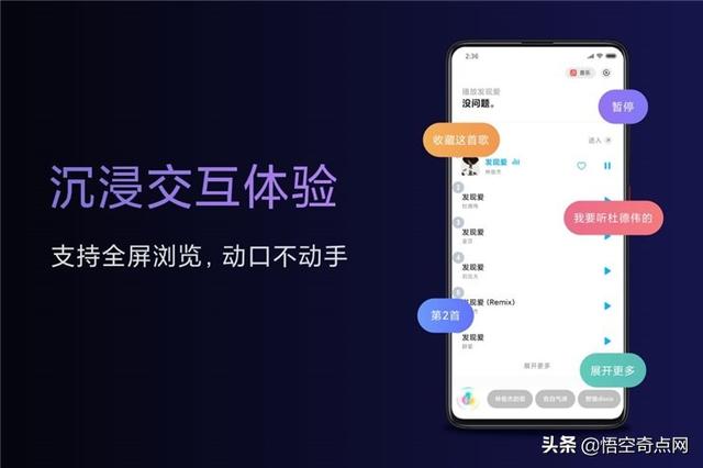 支持全屏瀏覽,無論內(nèi)容多長,都可以輕松閱讀。當(dāng)你使用小愛3.0時,頁面上你能看到的可以點擊的地方,都可以用語音指令來操作。例如,聽音樂,您可以輕松地選擇歌曲、裁剪歌曲、收集、播放和直接切換版本,例如“我想聽實時版本”,而不必單擊移動屏幕、移動嘴、使用語音指令輕松選擇歌曲、剪切歌曲、收集、播放和直接切換版本。比如說“我要聽live版”。(目前支持聽音樂、找視頻、查菜譜、聽有聲節(jié)目等場景,未來將拓展到更多場景中)