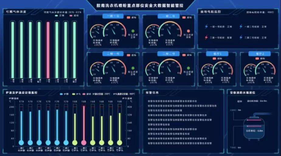 通過粉房重點部位監測系統,實現產線在連續運行狀態下,自動采集工藝參數、爐溫數據、接地電阻、粉塵濃度及粉房溫濕度等數據信息并進行統一分析,當數據異常時進行報警。