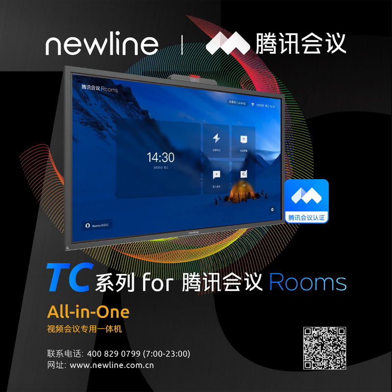 9月10日,在“2020騰訊全球數字生態大會”當天,newline TC系列交互屏正式發布!騰訊會議已有超過1億用戶,目前已深度服務于政務、金融、教育、醫療等行業和中小企業在線辦公。未來,newline TC系列交互屏將基于騰訊會議Rooms系統,打造覆蓋會議室場景的辦公協同體驗。
