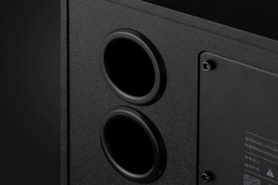 后置雙倒相管設計,大大保證倒相管內部空氣在諧振頻率點擁有低的風噪聲,低頻更真實震撼。