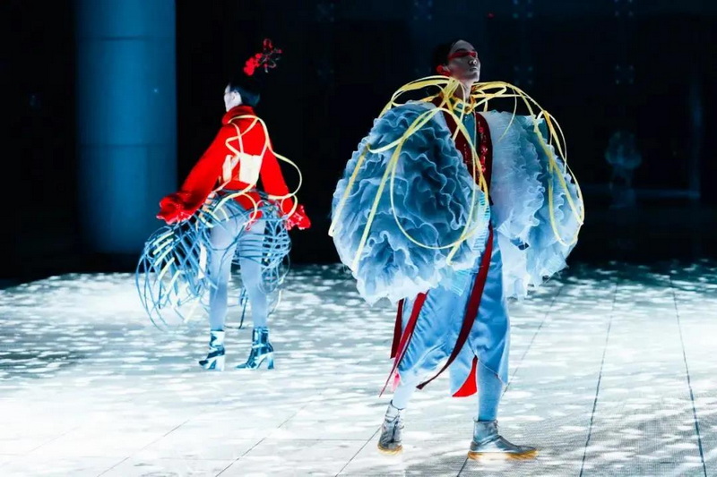 《屏視世界:融合與聚變》是一個融合廣州美術學院視覺藝術設計學院數(shù)字媒體藝術2021屆18名畢業(yè)生和廣州美術學院工業(yè)設計學院服裝與服飾設計專業(yè)2021屆13名畢業(yè)生的一次沉浸式新媒體服裝藝術展演的創(chuàng)新嘗試。《屏視世界:融合與聚變》的舞臺并不單一指向技術手段上的跨學科交流,更是我們對自然和未來應有的敬畏和憧憬。