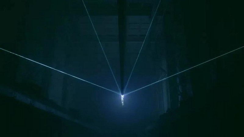 這是俄羅斯創(chuàng)作團隊SETUP在一個充滿工業(yè)風的廠房內(nèi)做的燈光裝置測試,將激光與影像裝置巧妙結(jié)合,激光劃過裝置時會點亮對應的影像,仿佛一道天外之光劃過長空。