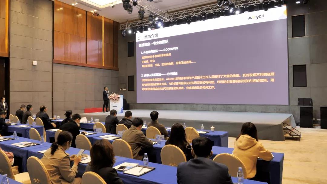 活動現場,艾比森董事任永紅先生發表主題演講,圍繞UV公司發起337調查、艾比森聯合同行積極應訴、德州東區法院庭審以及反訴等重點階段向現場嘉賓分享了勝訴案的全過程,闡明了艾比森強化知識產權布局、搶占國際競爭制高點的決心和舉措。