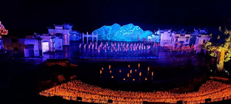 《夢里老家》是江西婺源的大型山水實景演出,是一臺融藝術性、民族性于一體的視聽盛宴,展現了徽州人的歷史和文化,填補了婺源夜間休閑旅游市場的空白。其投影系統設計、安裝與調試工作由中清映業集團負責,配備了 Christie Roadster S+22K-J、Roadie HD+35K投影機、Crimson WU31 3DLP激光投影機和 DWU2022-HS 1DLP 激光投影機,將文化、藝術和技術完美融合,把高度逼真的畫面投映在各種舞臺道具上,共同構成主舞臺的背景,增強了現場表演的效果和舞美藝術性。