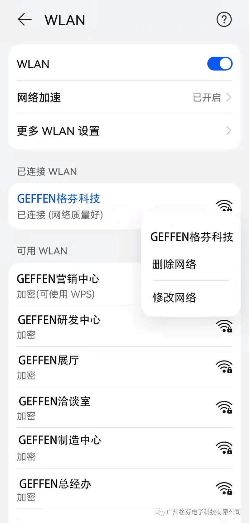2、長按已經(jīng)鏈接上的路由器的WIFI名稱。(重要:路由器必須是最后連接中控使用的路由器。)
