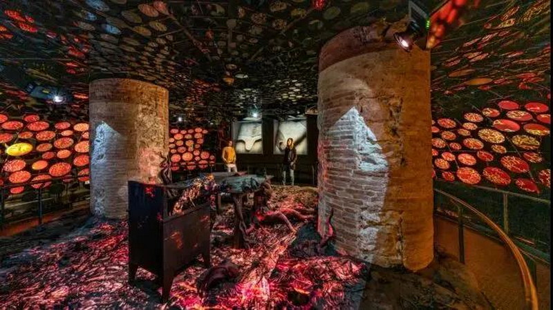 在Gaudí Dome圓形展廳中,設置有1000多面圓形鏡面屏幕,21聲道環繞立體聲全方位打造一個高迪意識中的自然界。視覺、嗅覺、聽覺、味覺、觸覺……無不引領我們穿越過去和未來,觸摸微觀和宏觀,發現與探索高迪建筑設計中各種細節的靈感來源。