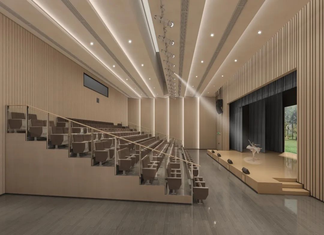 目前現場土建結構已經基本完成,正在進行外幕墻和里面機電安裝的大面積施工。舞臺機械系統工程安排進場,工人進行安全培訓,做好前期準備工作。整理搭建腳手架,建立安全可靠的安裝條件。