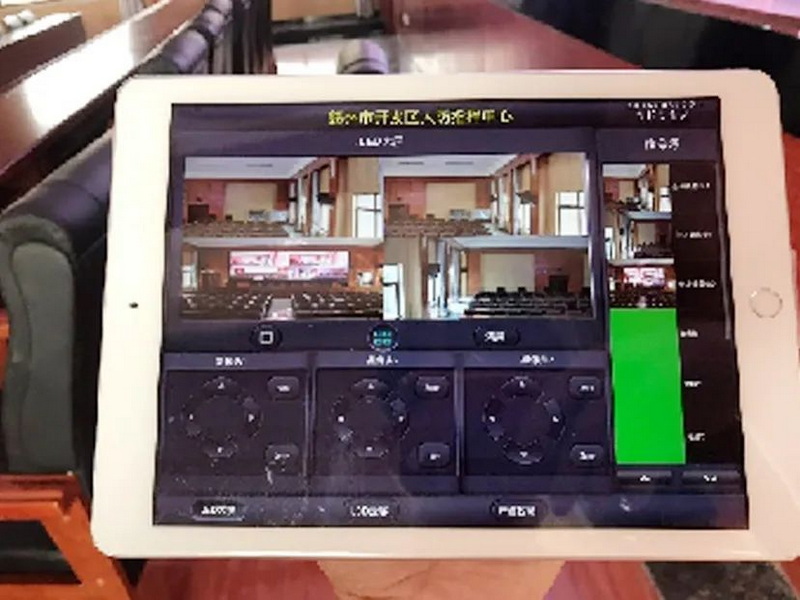 現(xiàn)場已實現(xiàn)無紙化的升降、視頻切換、音頻控制、設(shè)備的電源開關(guān)、大屏的開關(guān)等功能。