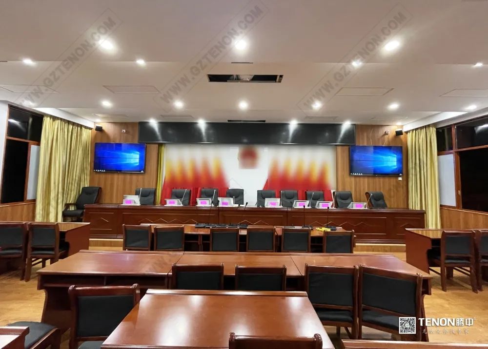 此次騰中為此項目設計了桌面式無紙化會議系統,會議桌無需開孔,即擺即用,安裝使用方便快捷。桌面式無紙化會議終端操作系統為Windows系統,使用體驗感與日常辦公電腦無異,軟件與文檔之間兼容。桌面式主屏15.6寸超薄高清IPS觸摸顯示屏,屏幕比例:16:9,屏幕最好分辨率支持1920*1080Hz等。輔屏采用7寸高清顯示屏,用于顯示與會者人名。前屏可以調節角度,可任意調節適合與會者觀看的角度。