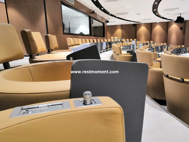雷蒙電子為教室的每張椅子上裝備全數字扶手嵌入式會議系統,RX-6810系列是集討論、視頻跟蹤、扶手式安裝方式等多功能為一體的高端系統,指向性電容式麥克風,并帶有開啟指示燈圈,手持式話筒具有2米彈弓線連接線纜(拉長后),方便使用。全數字扶手嵌入式同傳會議系統RX-6818L系列,內置通道選擇器,通過接收翻譯臺輸出的語言可接收8/16/32/64種不同的語言,立體聲耳機輸出,音量可自由調節。兩套系統會議單元可用于嵌入安裝座椅扶手上,也可以安裝在會議桌面上,且每個會議單元配置保護蓋,方便不使用的情況下保持座椅平整,及清理時具備防水功能,人性化設計,也便于日常整理和維護。