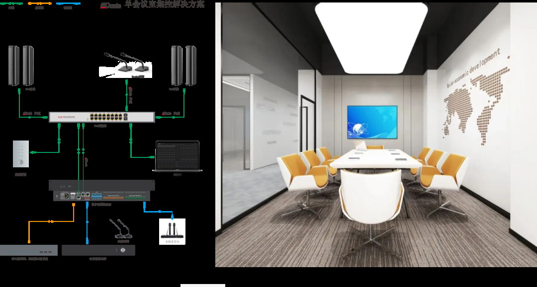 Dante數字音頻網絡解決方案,在單個會議室的使用中給予用戶極致順暢的溝通體驗,音質更清晰,搭建簡單、維護便捷;