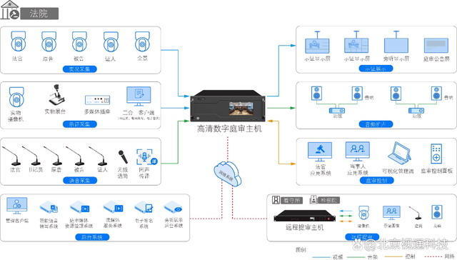 直播點播:庭審主機可推送直播流,提供同步網(wǎng)絡(luò)直播的能力,為庭審查詢點播、案件分析與統(tǒng)計提供資源。