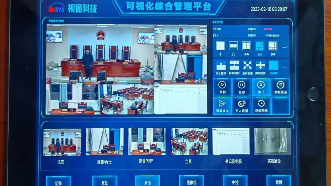 項目采用視通科技模擬法庭智慧教室解決方案,包括硬件環境建設、系統應用軟件、后臺管理系統建設等內容。