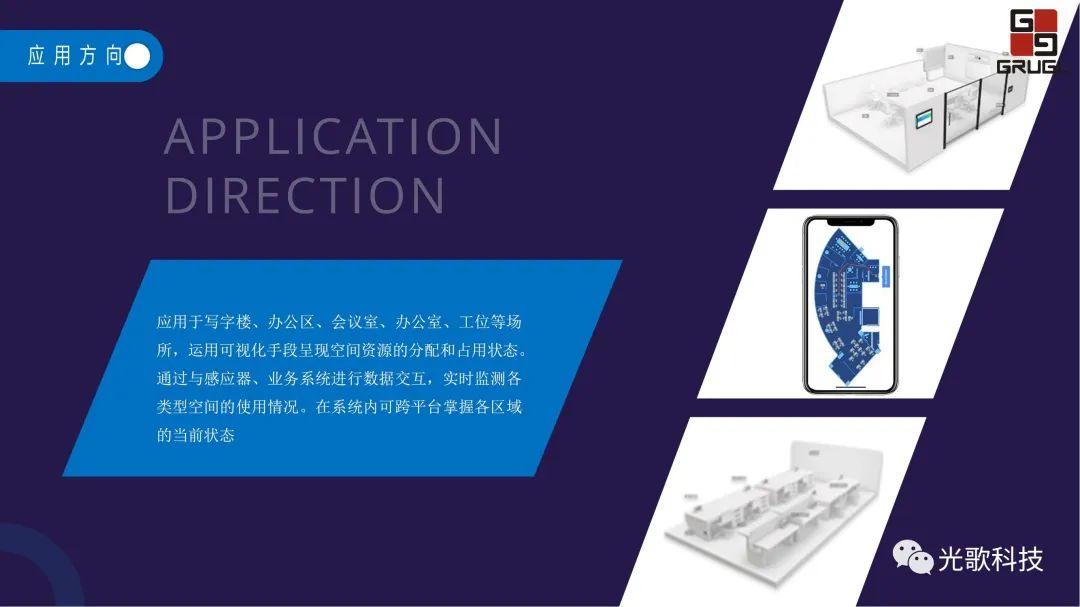 應(yīng)用方向:應(yīng)用于寫字樓、辦公區(qū)、會議室、辦公室、工位等場所,運用可視化手段呈現(xiàn)空間資源的分配和占用狀態(tài)。通過與感應(yīng)器、業(yè)務(wù)系統(tǒng)進行數(shù)據(jù)交互,實時監(jiān)測各類型空間的使用情況。在系統(tǒng)內(nèi)可跨平臺掌握各區(qū)域的當(dāng)前狀態(tài)。