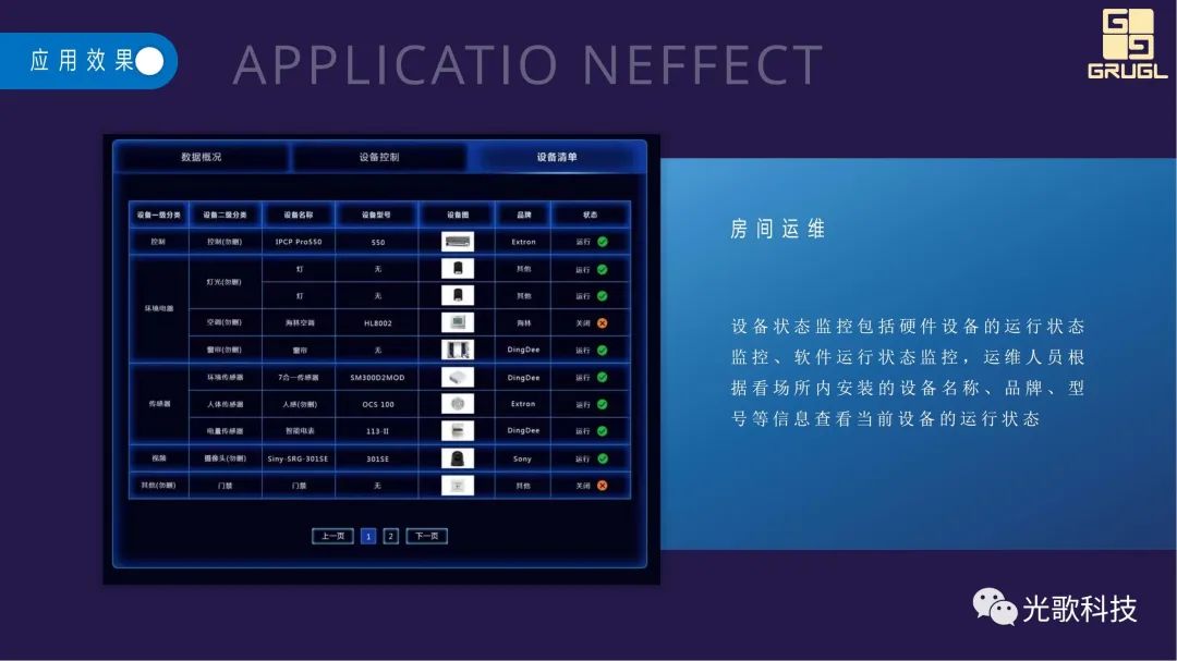 您是否因為音視頻系統(tǒng)“各自為政”,無法統(tǒng)一管理和操控而煩惱?GRUGL(光歌)音視頻系統(tǒng)可視化集控平臺,幫您圓滿解決這個問題。多系統(tǒng)同平臺統(tǒng)一操控、統(tǒng)一運維,您再也不用為音視頻系統(tǒng)操心了。會議預(yù)約管理系統(tǒng)、無紙化會議系統(tǒng)、信息發(fā)布系統(tǒng)、音響擴聲系統(tǒng)、高清錄播系統(tǒng)、分布式坐席協(xié)作系統(tǒng),等等,全部音視頻系統(tǒng),一律包攬進來操控與運維,從此,科學(xué)的手段,讓音視頻系統(tǒng)更加智能化和人性化。