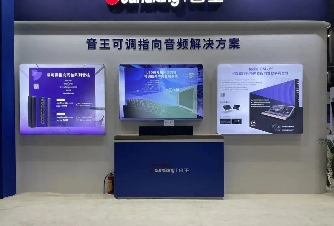 在此次展會(huì)上,一個(gè)獨(dú)特展區(qū)是音王可調(diào)指向音頻解決方案展示區(qū)。其中,首款可控線陣列揚(yáng)聲器指向性數(shù)字調(diào)音臺(tái)CADAC CM-J50引起了廣泛關(guān)注,用戶只需提供線陣列產(chǎn)品數(shù)據(jù)和覆蓋角度就會(huì)獲得指向性控制的參數(shù),導(dǎo)入數(shù)據(jù)后就能實(shí)現(xiàn)線陣列的指向性控制。同時(shí)還推出了音王同軸可調(diào)指向性音柱LA系列以及LED屏專用可調(diào)指向性同軸音響系統(tǒng)。
