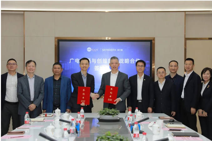 2024年1月17日,廣電運通集團股份有限公司(簡稱廣電運通)與創維集團有限公司(簡稱創維集團)在廣州舉行戰略簽約儀式,廣電運通黨委書記、董事長陳建良與創維集團聯合創始人黃培昇代表雙方簽署戰略合作協議,廣電運通黨委委員、副總經理謝華;廣電運通金融科技首席技術官兼中智融通總經理王利華等共同出席了此次簽約儀式。