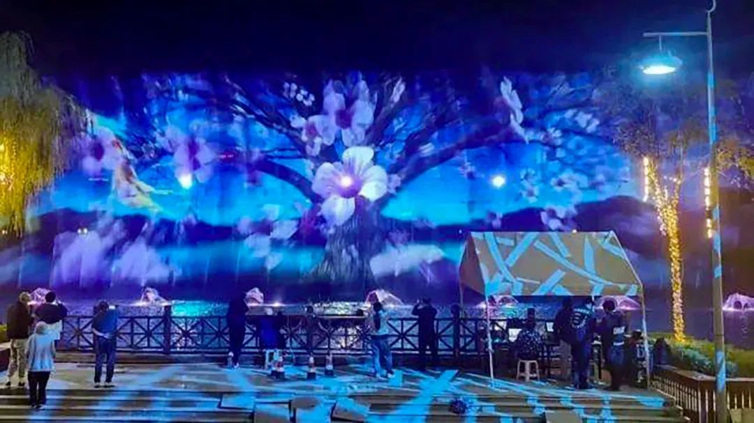 ▲ 投影畫面寬90米*高12米 噴泉的總寬度為150米