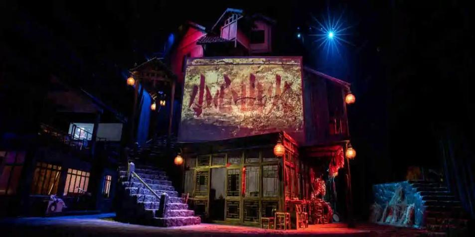 羅懷臻先生曾給過舞臺美術這樣一個定義,即舞臺美術是一個“場”,它代表著一種氣場、一個文化的氛圍、一個道德的環境,也代表著一個人性的現場。即戲劇空間是發生戲劇故事的場域,是戲劇表演的區域,演員的表演活動、所需要的道具,裝置都是在這個空間,相互有著緊密的聯系,相互配合闡述戲劇情境,形成一種戲劇氛圍。以往傳統舞臺美術設計為了外化戲劇所需氛圍,是通過布景、道具、燈光、音效等元素來營造舞臺上的視覺效果,用造型藝術的具象方式外化戲劇作品中情緒和感受信息。
