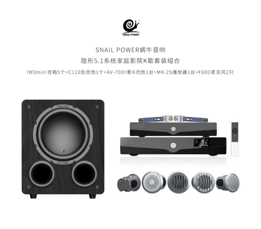 它來了它來了,眾多粉絲一直期盼的,效果爆棚、價格低廉的吸頂嵌入式5.1聲道家庭影院+KTV音響系統問世了,SNAIL POWER蝸牛音響懷著激動的心情發布“全球最小家庭影院”——IW3mini套裝。