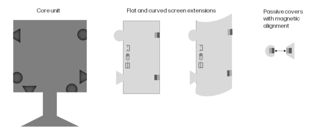 該設計主要概念是將平面和彎曲形狀的Micro LED模塊當作樂高積木一樣,相互進行水平和垂直配置連接。