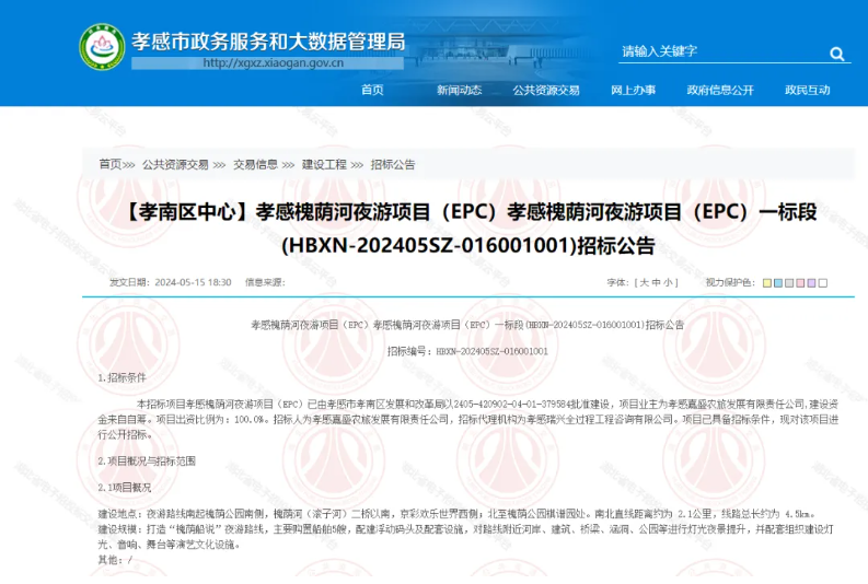 據(jù)消息,近期有兩個(gè)夜游項(xiàng)目正在招標(biāo),分別是貴州“夜游黃果樹(shù)”升級(jí)改造項(xiàng)目以及湖南孝感“槐蔭河夜游”項(xiàng)目,下面來(lái)看詳細(xì)招標(biāo)公告。