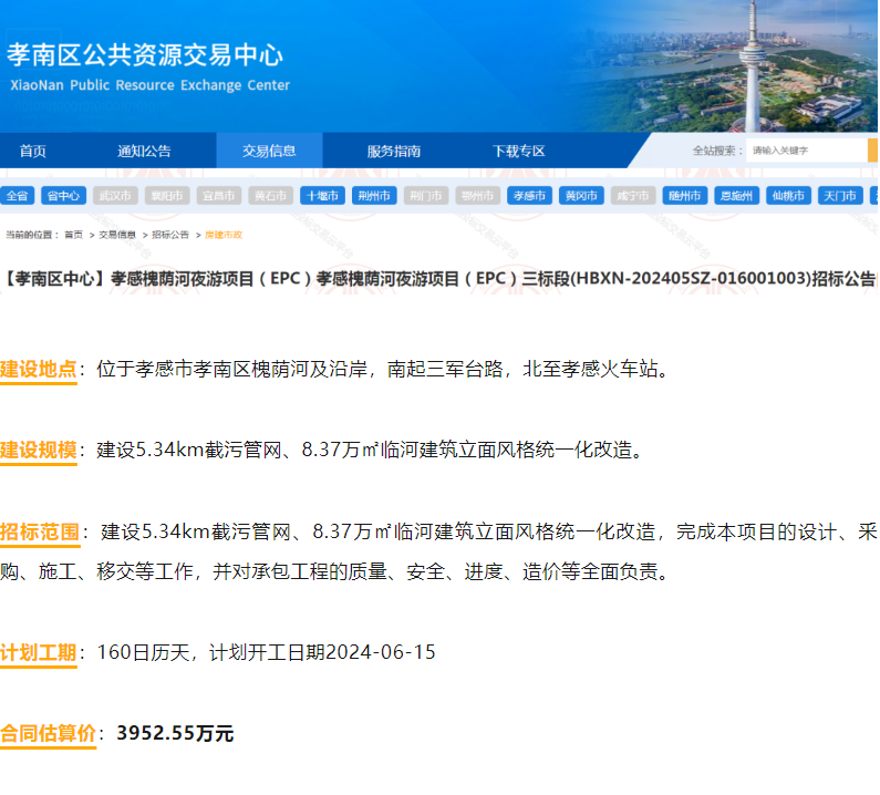 招標(biāo)范圍:建設(shè)5.34km截污管網(wǎng)、8.37萬(wàn)㎡臨河建筑立面風(fēng)格統(tǒng)一化改造,完成本項(xiàng)目的設(shè)計(jì)、釆購(gòu)、施工、移交等工作,并對(duì)承包工程的質(zhì)量、安全、進(jìn)度、造價(jià)等全面負(fù)責(zé)。