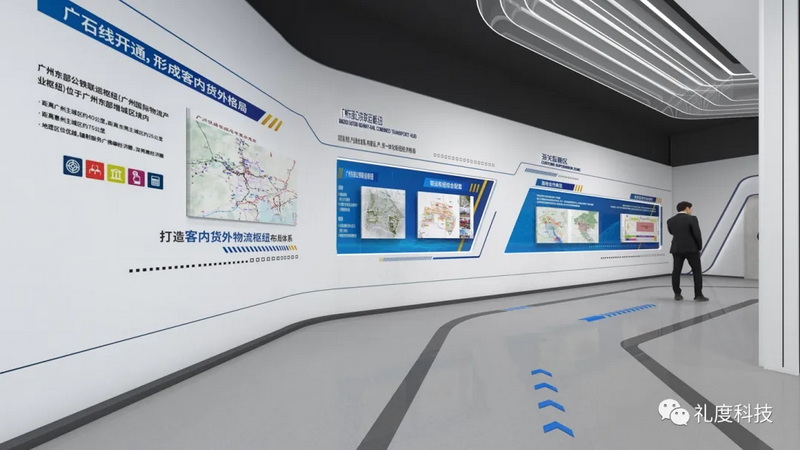 通過發光燈帶和圖文/燈箱的方式,展示增城西鐵路物流園、廣州東部公鐵聯運樞紐、海關監管區等內容;
