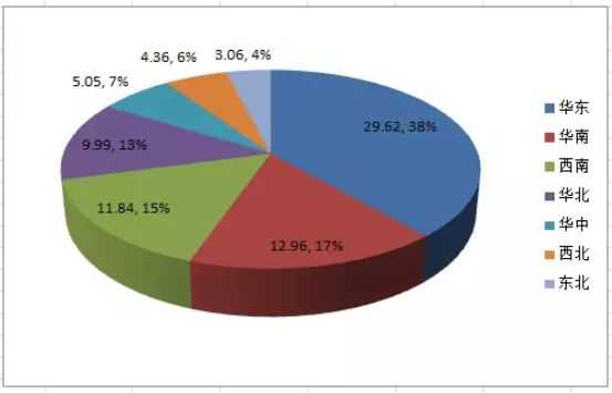 2018年上半年,我國(guó)城市智能交通千萬(wàn)項(xiàng)目市場(chǎng)主要集中在我國(guó)華東地區(qū)(如圖2所示)。市場(chǎng)區(qū)域排在前十的省及直轄市依次包括山東、廣東、四川、江蘇、安徽、廣西、天津、浙江、河北、上海,其中華東地區(qū)就有5個(gè)省及直轄市入榜,前十市場(chǎng)區(qū)域